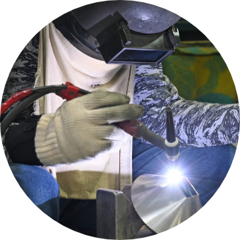 TIG溶接により、薄板の歪みを抑えつつ高品質な溶接を実現。加圧タンクやホッパーの耐圧・耐食性を支え、食品や化学薬品業界の厳しい品質要求を満たす精密部品を提供しています。